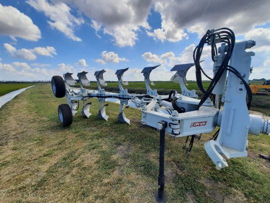 Гидравлическая защита от камней NonStop принципиально включает на каждую пару корпусов плуга по одному гидроцилиндру с подсоединенным напрямую гидроаккумулятором, заполненным азотом. При срабатывании механизма корпус плуга посредством гидроцилиндра давит поршень в аккумулятор. Газ сжимается и после преодоления препятствия автоматически возвращает корпус плуга в исходное положение. Защита от камней NonStop предлагается как для самых маленьких плугов, так и для более крупных моделей.